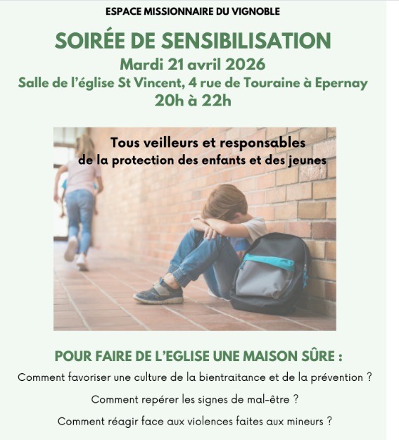 Soirée de sensibilisation pour la protection des jeunes à Épernay avec Mgr Javary (voir autre affiche)