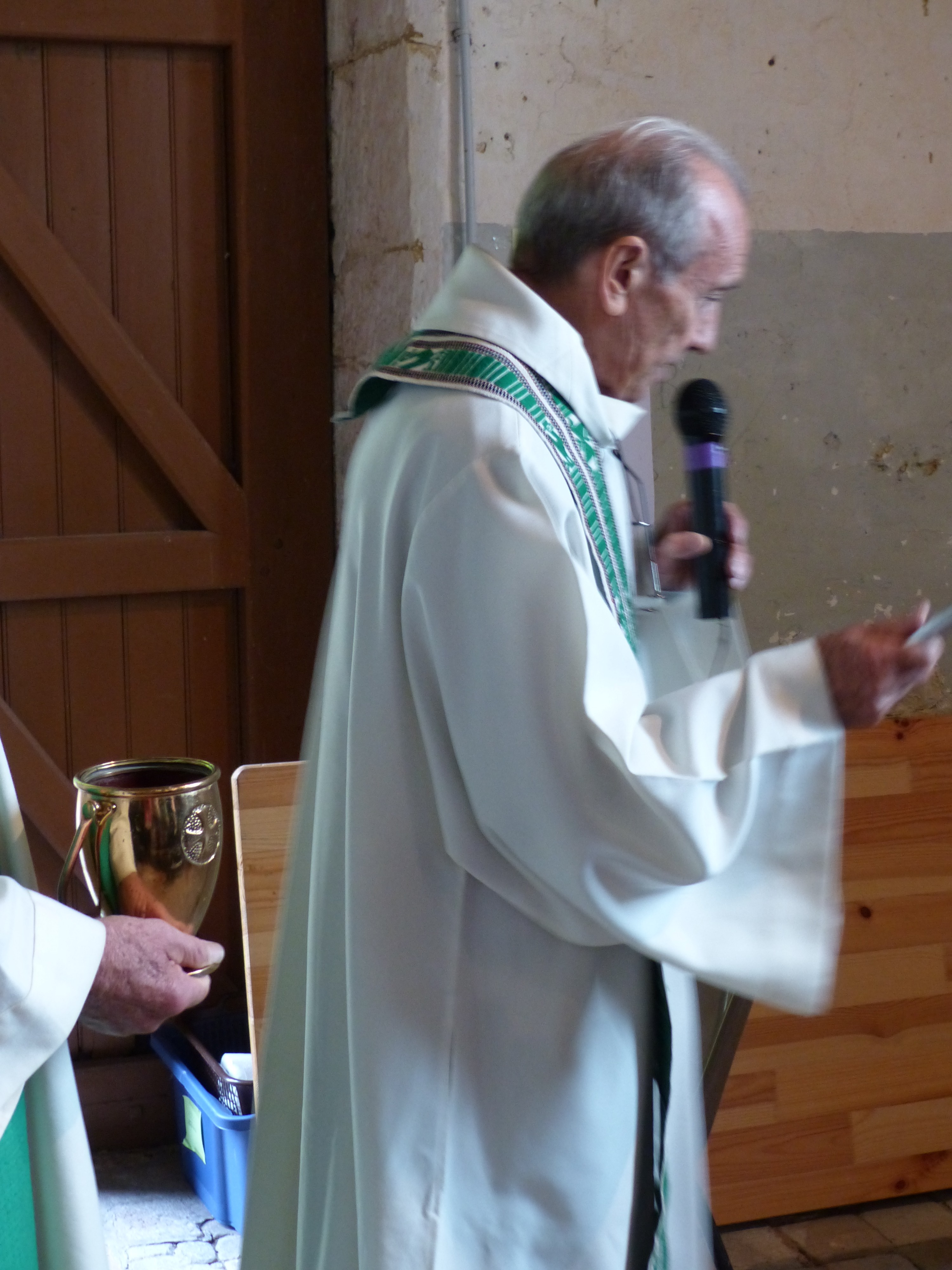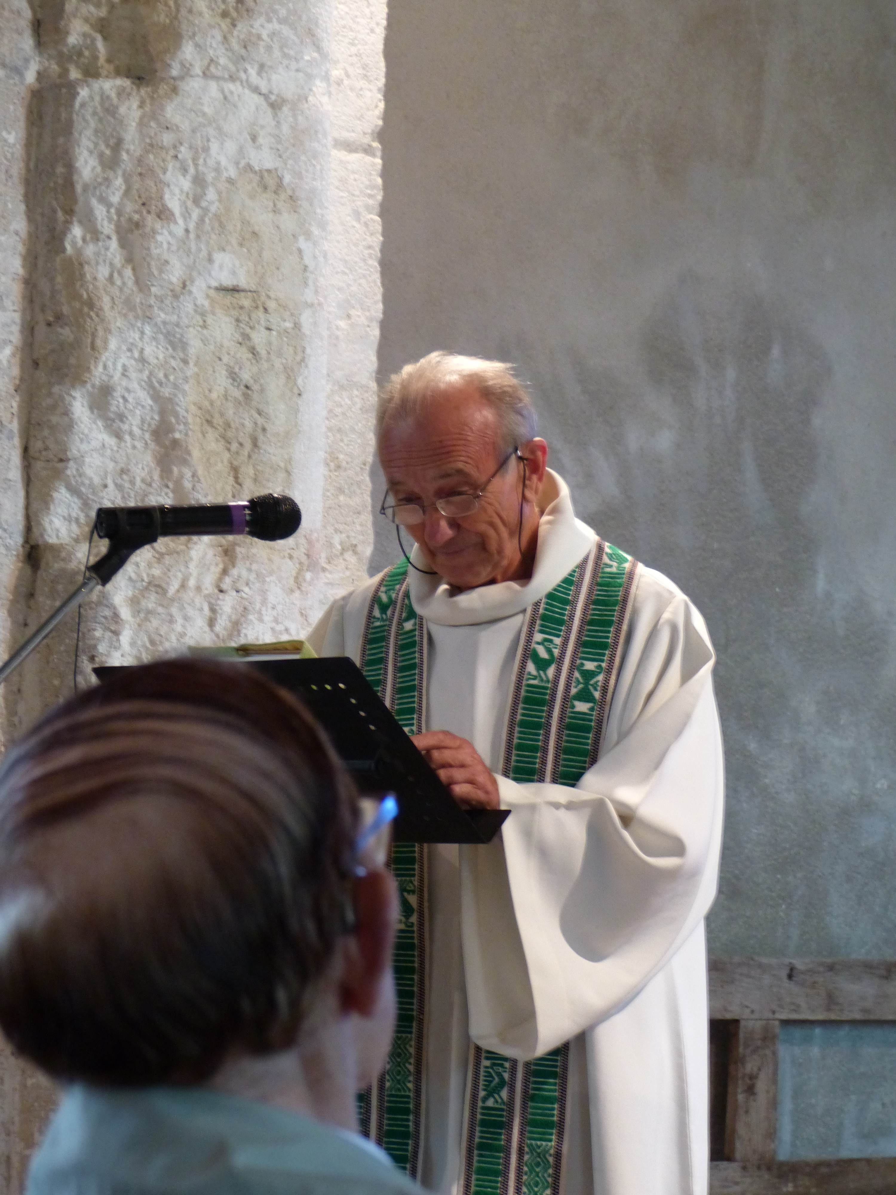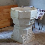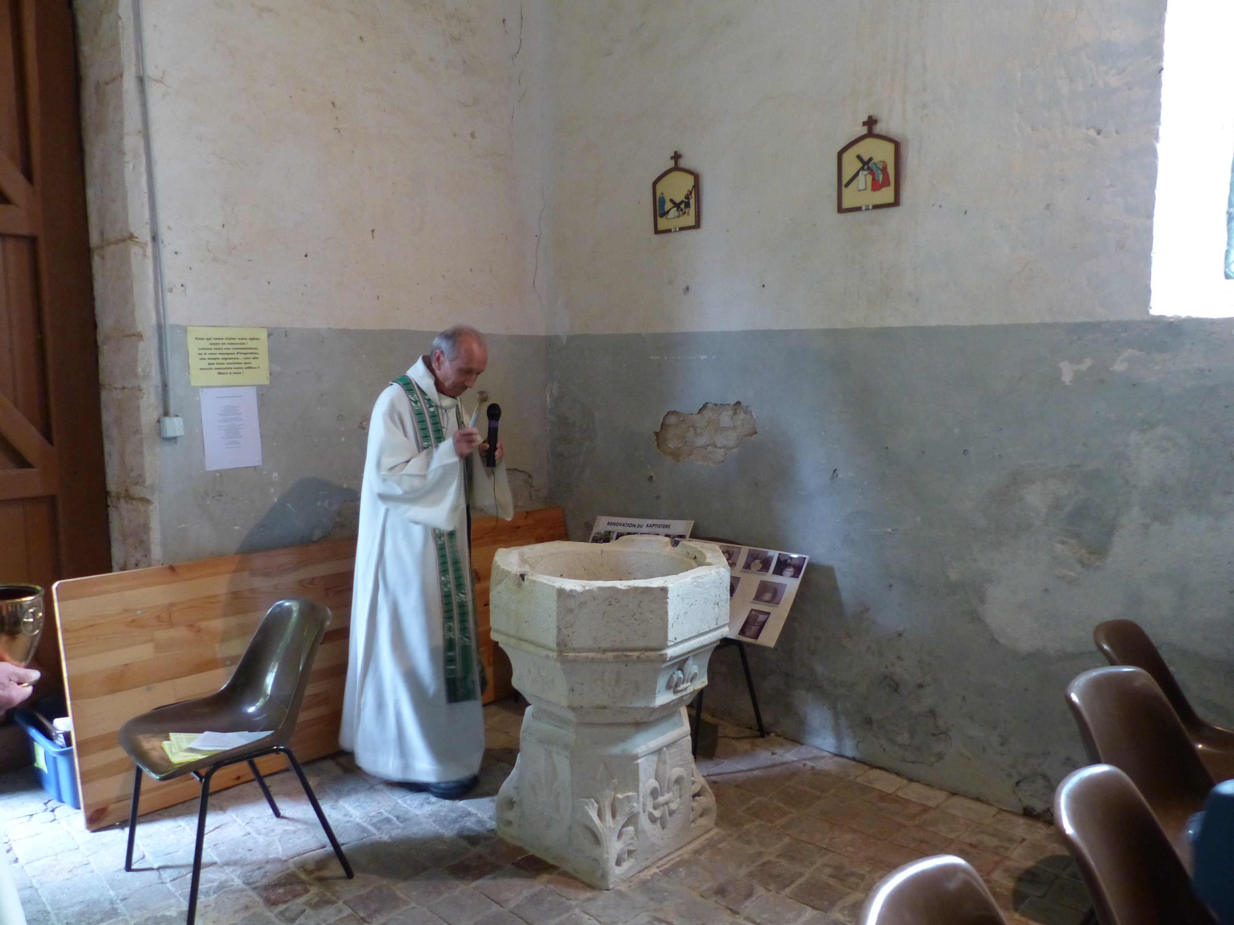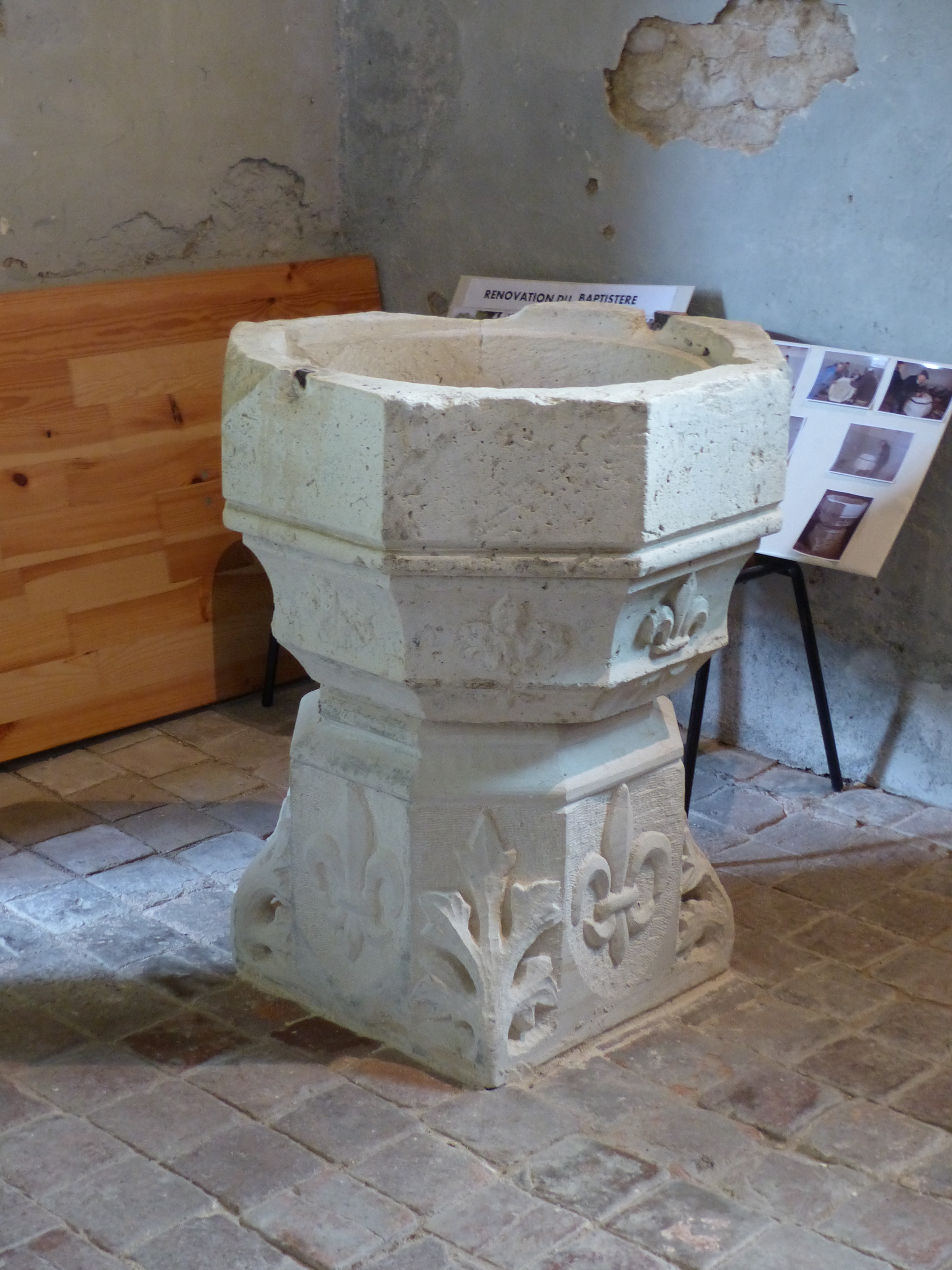 Un événement rare à Pierre-Morains: réfection du baptistère. La pierre baptismale va retrouver un socle en pierre . Merci au sculpteur, Paul Royer.