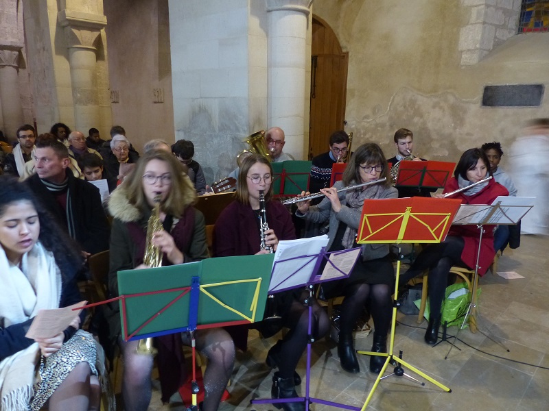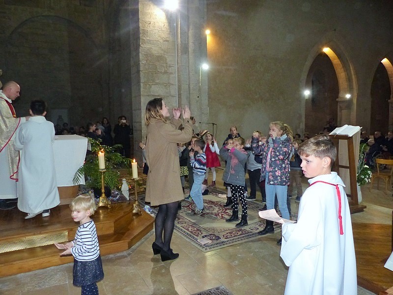 C’est le Père Grégoire qui a ensuite donné la messe devant le parterre d’enfants assis devant l’autel et la crèche. Cette célébration a été animée aussi par Claire (pour l’occasion chef de chœur) et pour la partie instrumentale des musiciens : avec une famille bien connue à Vertus et également Amélie, Jean-Marc et Alain à l’orgue.