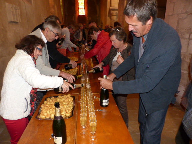 Puis à la suite de l’office, vint le temps des discours, tout d’abord Paul Charpentier lut un poème écrit pour la circonstance, Étienne Prieur retraça les 16 années de présence de l’abbé Mainsant, Pascal Perrot, maire de Vertus, dans son témoignage regretta vivement ce départ. Ensuite, parmi les cadeaux remis, une enveloppe lui a été confiée, permettant l’achat un VTT électrique et sûrement de quoi s’offrir une nouvelle escapade en montagne. Quelques bouteilles de champagne et un présent aux insignes de Vertus sont venus s’y ajouter en souvenir de notre ville. Un vin d’honneur bien animé fut l’occasion à chacun des fidèles de présenter leurs adieux, signe de leur amitié et de leur reconnaissance.