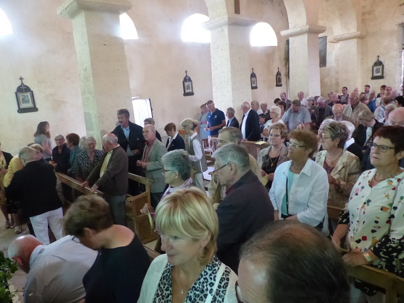Après un concert inaugural, est venu ce samedi 23 juin le moment de conclure quatre ans de discussions, d’expertises, de projets et de constitution de financements puis finalement de travaux sur une église qui menaçait sérieusement de voir tomber le clocher et une toiture qui devenait comme une éponge. Les habitants ont pris conscience de l’ampleur de la tâche. Le maire en tête, chacun a apporté son écot, retroussé les manches pour ne pas alourdir les frais de cette opération qui s’est montée à 275.000 Euros, somme qui n’est pas modeste pour la population de ce petit village. Souscription, subventions et aides des collectivités ont pu permettre cette réalisation. Cette inauguration s’est ainsi concrétisée par une messe dite par le Père Grégoire devant une centaine de fidèles réunis.